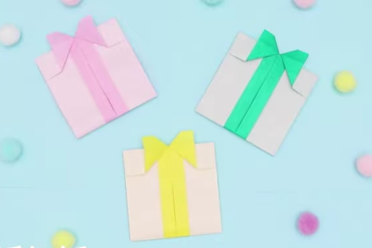 折り紙でかわいらしいプレゼントボックスを作ってみましょう!折り紙1枚で、リボンを巻いたプレゼントボックスを簡単に作ることができます。大きめの画用紙で製作して、お誕生日会用のメダルにするのもよさそうですね。詳しい工程を動画つきで紹介するので、保育に取り入れる際の参考にしてみてくださいね。