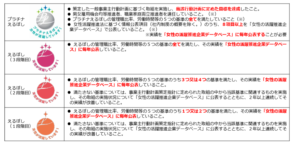 出典:えるぼし認定、プラチナえるぼし認定/厚生労働省より一部抜粋