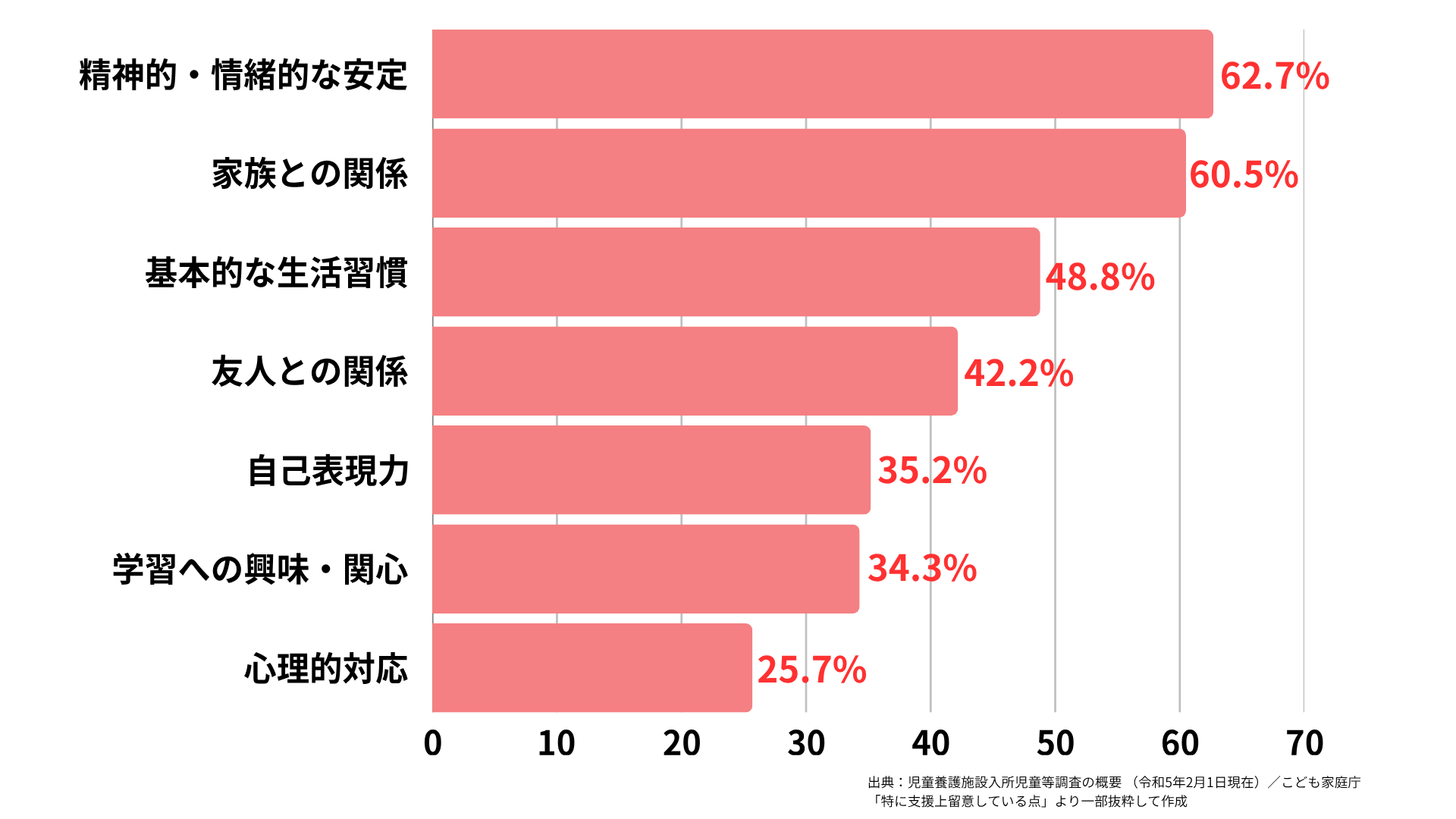 また、在所児童の約40%に発達障がいなどの心身の課題があることも特徴の一つです。
