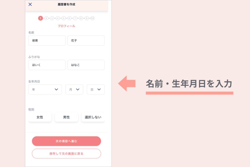 【Step2】フォームに沿って名前や学歴・職歴などを入力