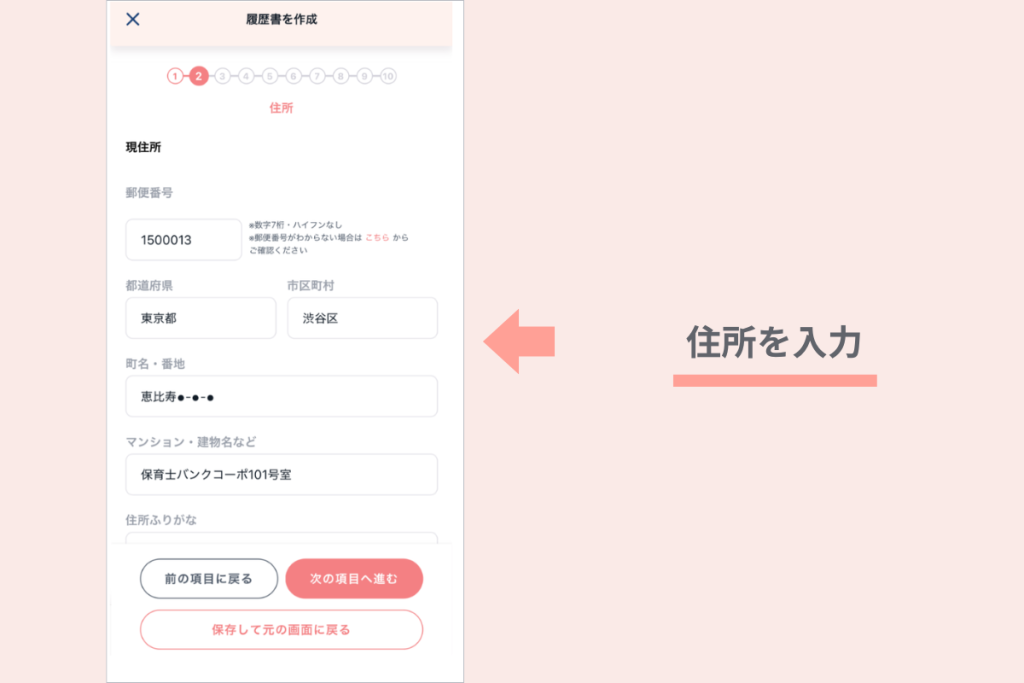 順番に選択していくだけで履歴書が完成するので、途中で迷ったり書き方に対して不安になったりすることがありません。